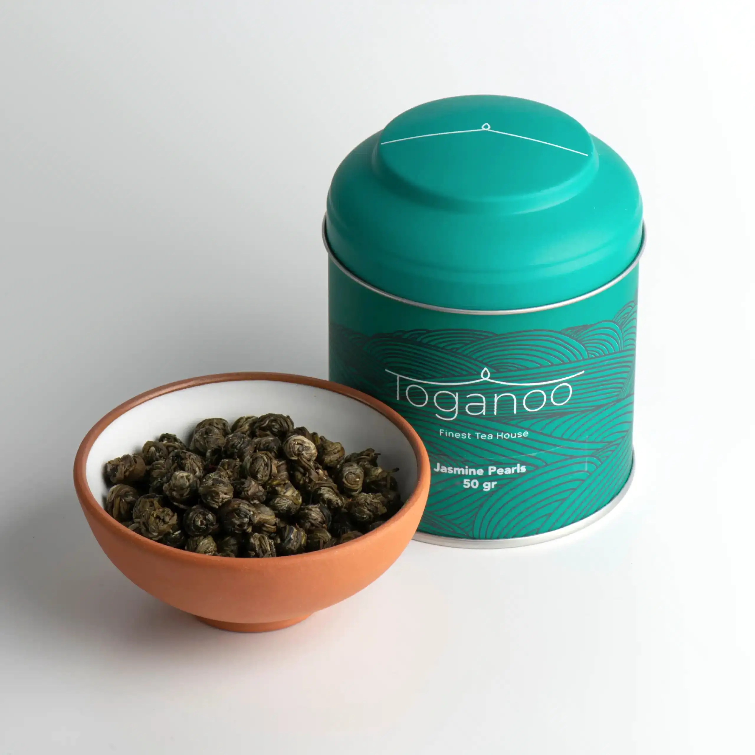 Muhteşem kokulu küçük lezzet topları. Jasmine Pearls de Jasmine Green gibi yasemin çiçekleri ile yapılır. Ancak formu ve yapım süreci ile Jasmine Green’den ayrılır. Yine Çin kökenli bu çayı oluşturmak için en genç yeşil çay yaprakları toplanır.  Özenle seçilen yapraklar, nemini atması için doğrudan güneş ışığı altında veya düşük ısılı bir ortamda tutulur.  Yasemin bitkisinin çiçeği, istenilen esnekliğe ulaşan yeşil çay yapraklarıyla katman katman kaplanır. İşlem tek tek elle yapıldığı için uzun ve zahmetlidir. Bekleme sürecinde yeşil çay yaprakları yasemin çiçeklerinin kokusunu ve lezzetini iyice emer. Demleme sırasında sıcak suya atılan küçük toplar açılarak aromasını salar. Böylece Jasmine Green’e göre aroması daha yoğun bir lezzet ortaya çıkar. Toganoo, yasemin çiçeğinin muhteşem aromasını daha fazla hissetmek isteyenlere en yetenekli ellerce hazırlanan Jasmine Pearls’ü önerir. Genelde tek başına tüketilse de bal ve limon da çaya eşlik edebilir.