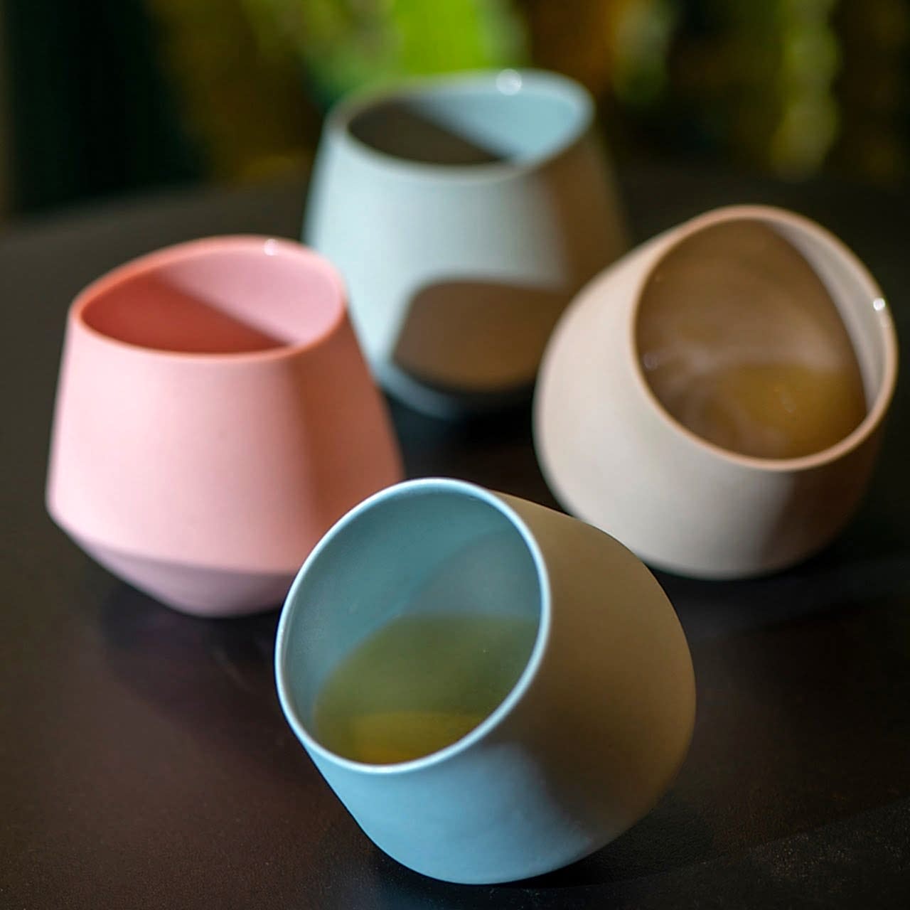 Bu kupa çaya bakış açınızı değiştirecek! Farklı taban tasarımıyla ister düz ister eğik şekilde kullanabilirsiniz. El yapımı porselen olan kupa, 4 farklı renk seçeneğine sahip.